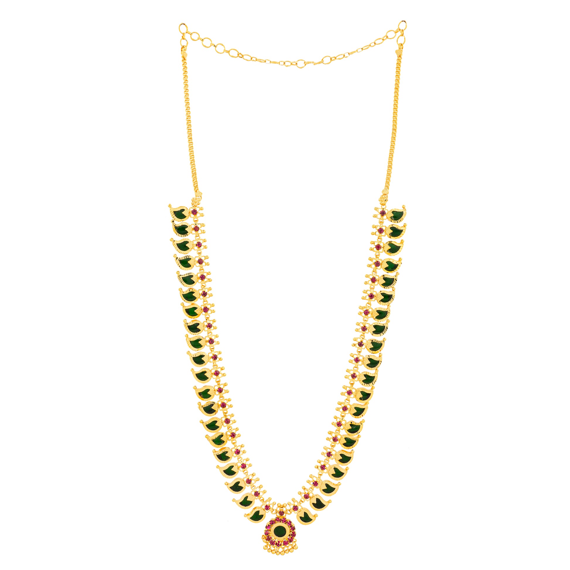 Enhance your traditional look with our stunning 20 Petal Mango Mala, designed to bring out the beauty of South Indian heritage. This necklace is perfect for women who love a bold, elegant touch to their outfit.