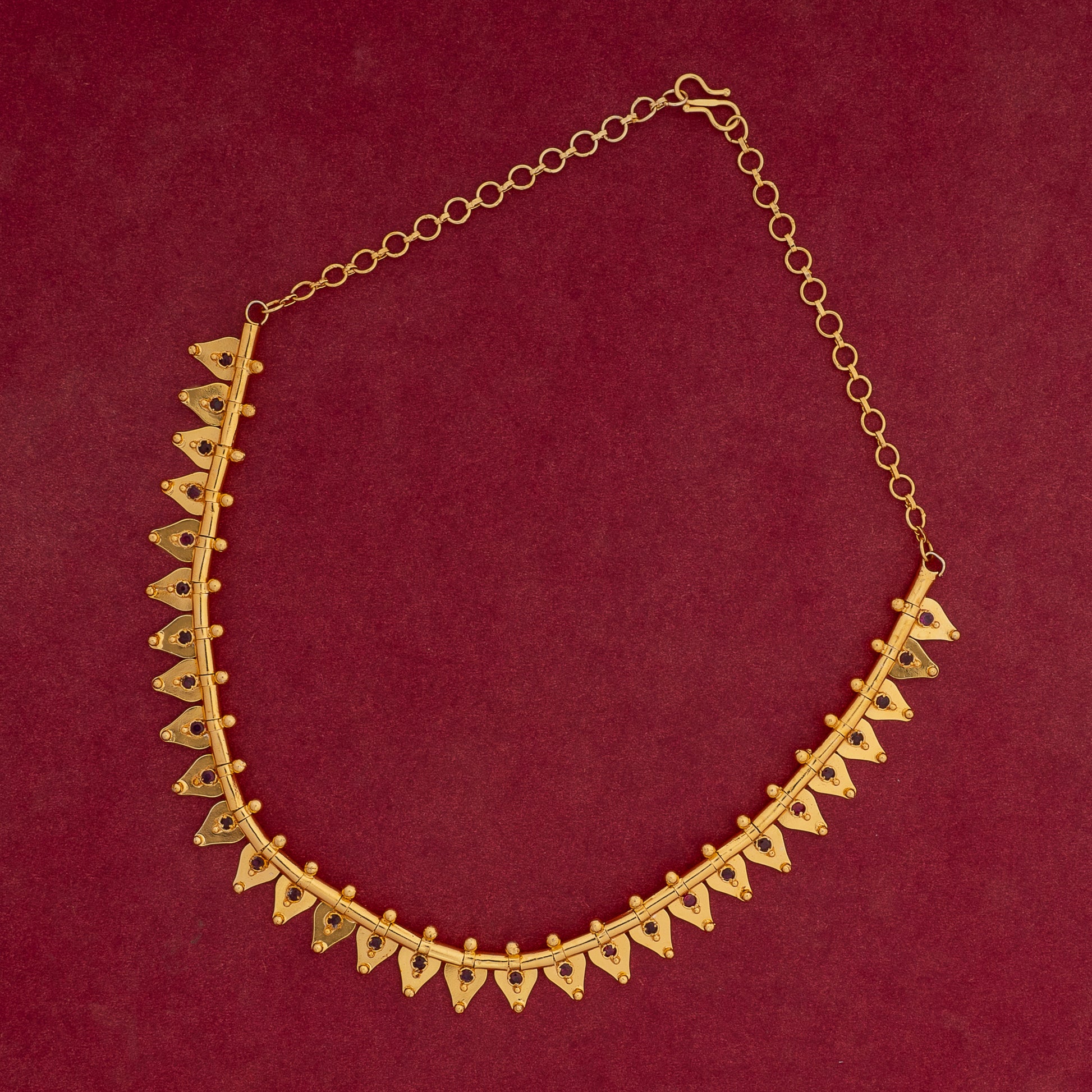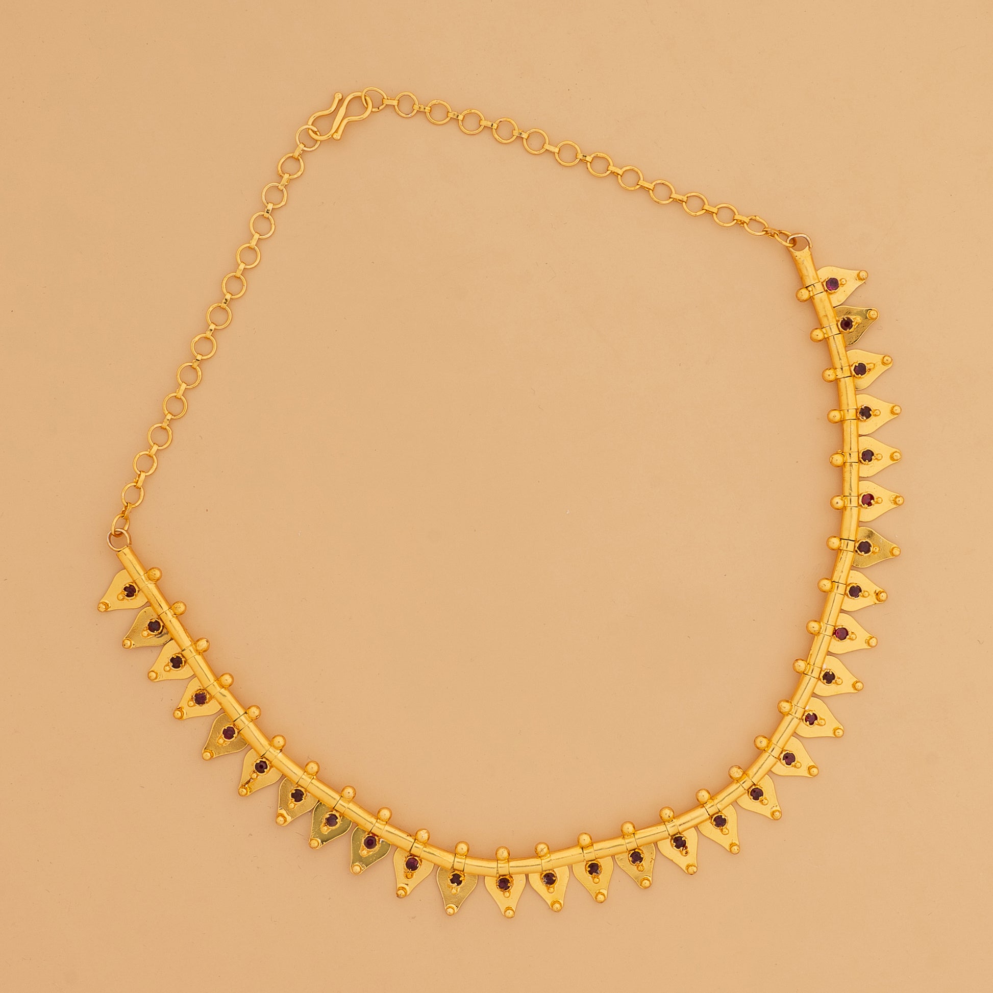 The Thalikoottam Necklace showcases expert craftsmanship rooted in traditional Tamil design. Its intricate detailing and sturdy construction make it a versatile accessory that enhances both modern and classic outfits. Perfect for special occasions, this necklace adds a refined and timeless elegance to your look, reflecting the rich heritage and skilled artistry behind its creation.