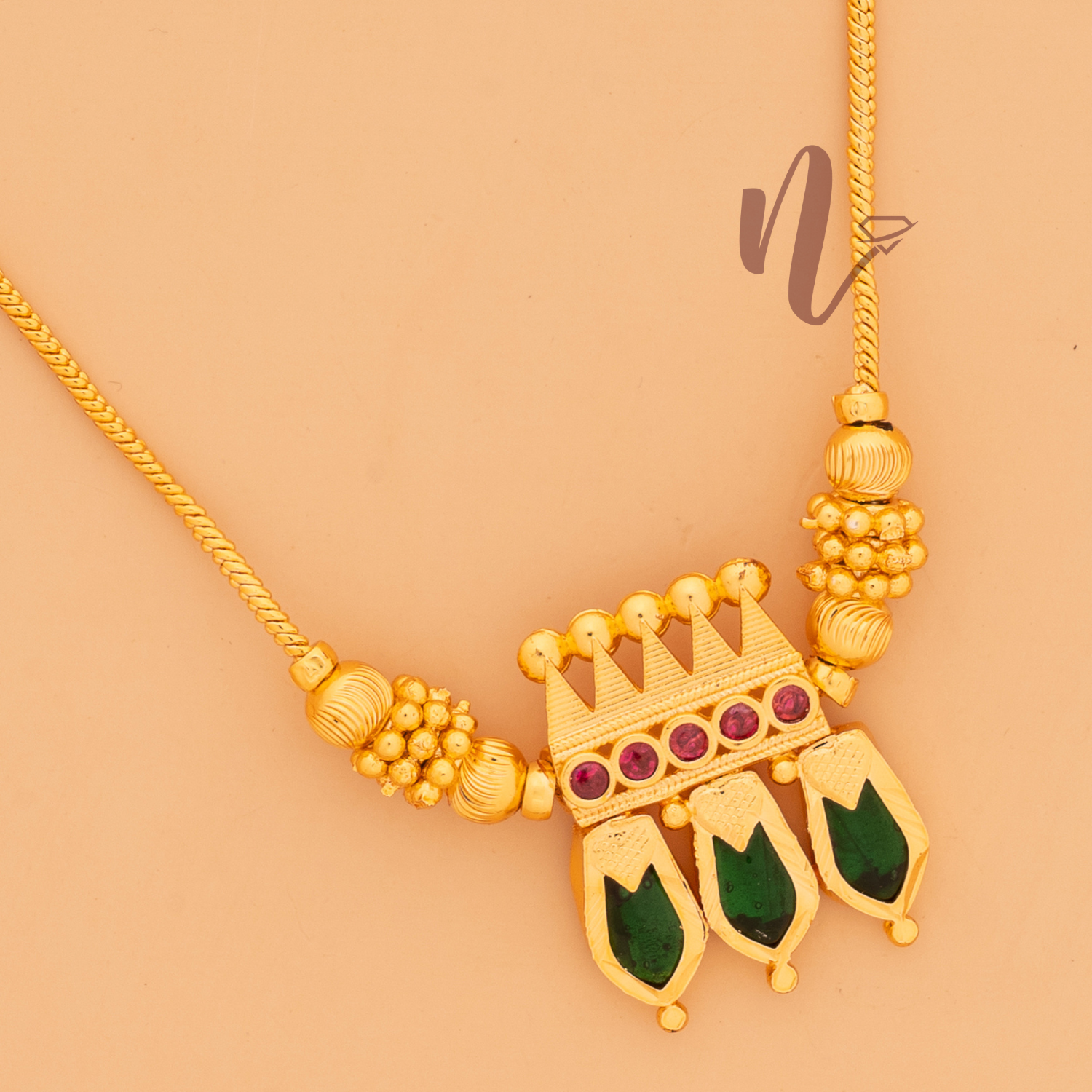 This exquisite Three Katta Nag features a striking green color complemented by a vibrant pink stone at its center. Crafted with precision, it showcases traditional design elements that symbolize strength and protection. Ideal for collectors and connoisseurs, this piece brings both aesthetic appeal and cultural significance to your collection.